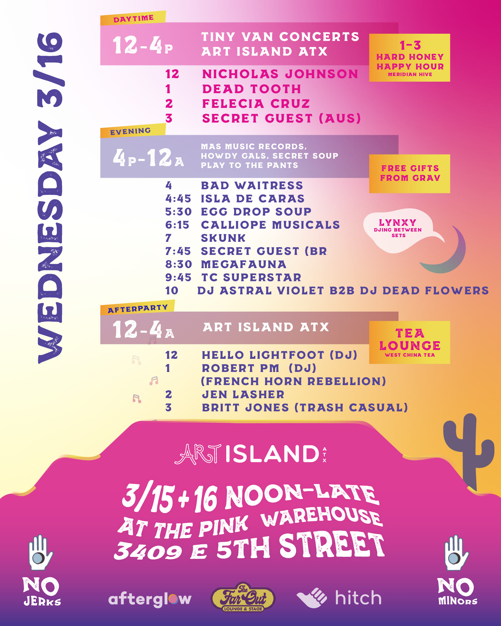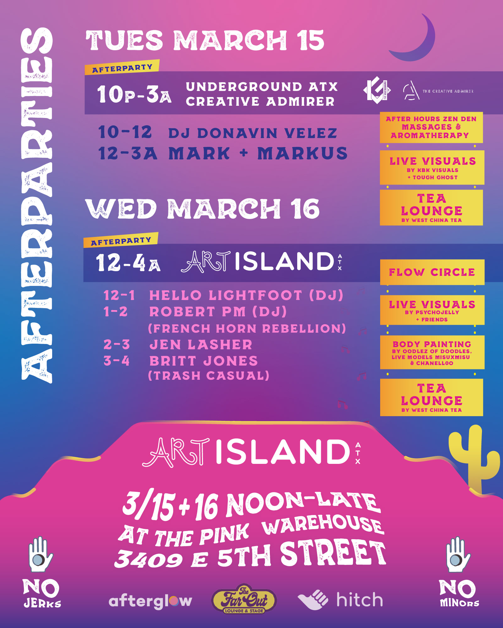 Assets: 2 days, over 16 bands took over The Pink Warehouse for 6 musical lineups. I designed all assets!